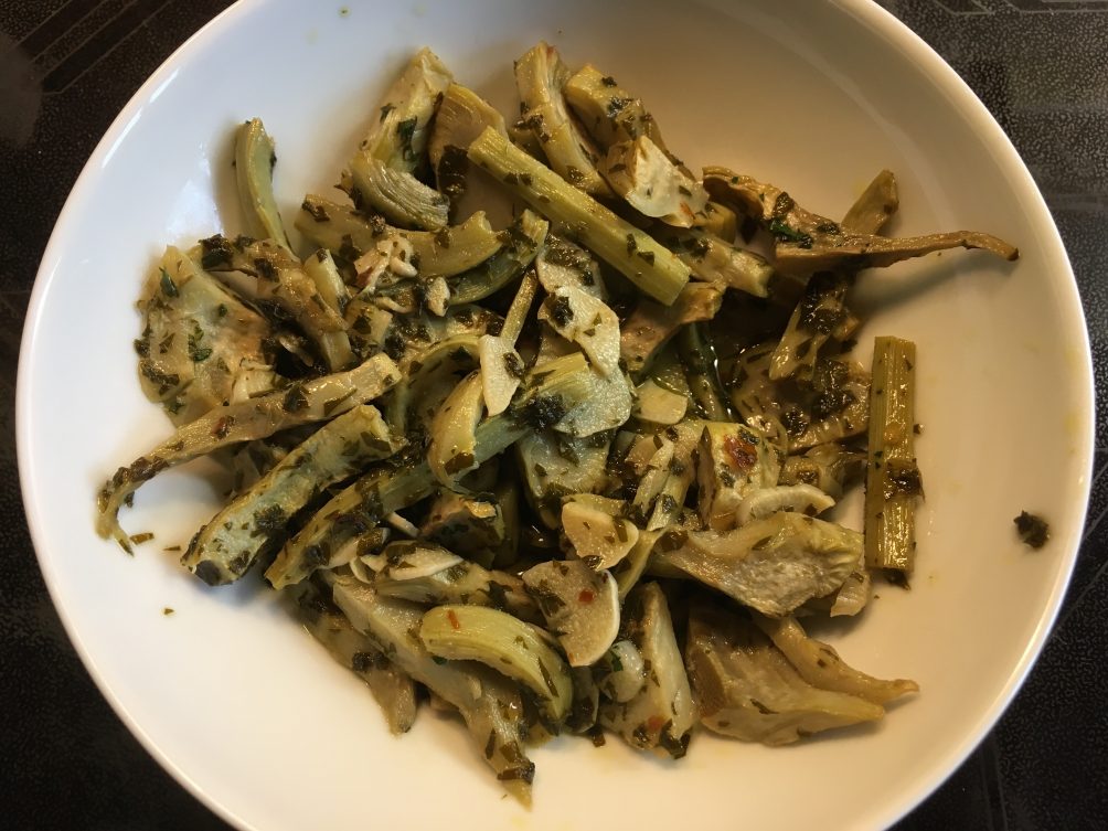 - Artischocken dicke Blätter aussen rum wegnehmen, bis die hellen weichen vorkommen